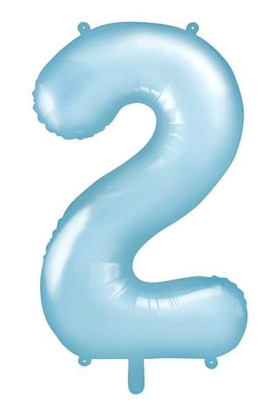 Balon foliowy w kształcie cyfry 2 w niebieskim, pastelowym kolorze stworzy doskonały wystrój imprezowej sali.