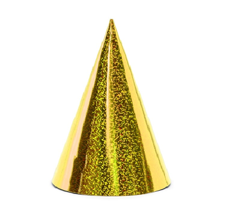 Błyszczące, papierowe czapeczki urodzinowe - doskonałe podczas przyjęcia urodzinowego, kinder balu, imprezy okolicznościowej.
