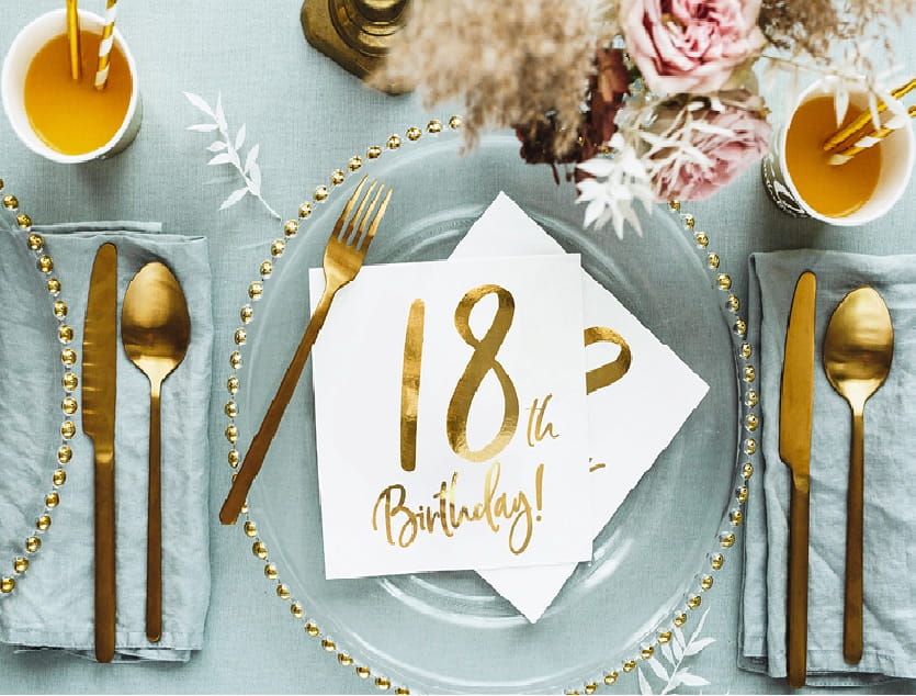 Serwetki są niezbędnym elementem, który musi pojawić się na imprezowym stole podczas 18 urodzin.