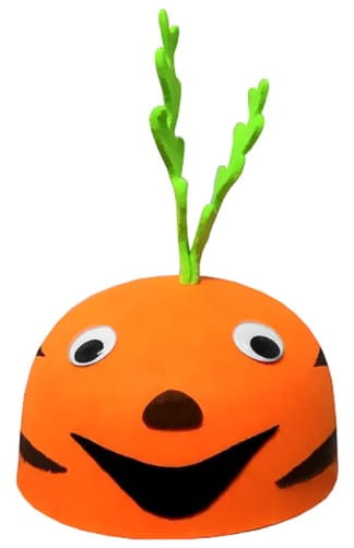 Czapka marchewka to szybki sposób na przebranie, świetnie sprawdzi się podczas przedstawienia szkolnego i balu w tematyce owoce i warzywa.