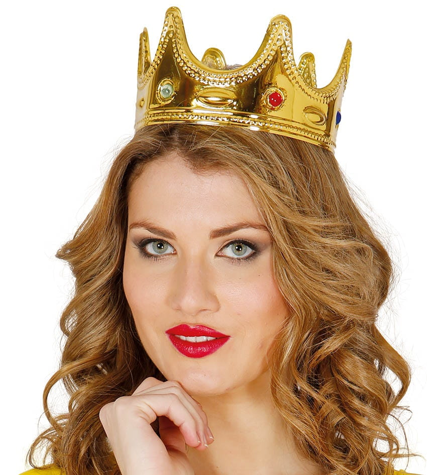 Korona królewska wykonana jest ze złotego tworzywa sztucznego.