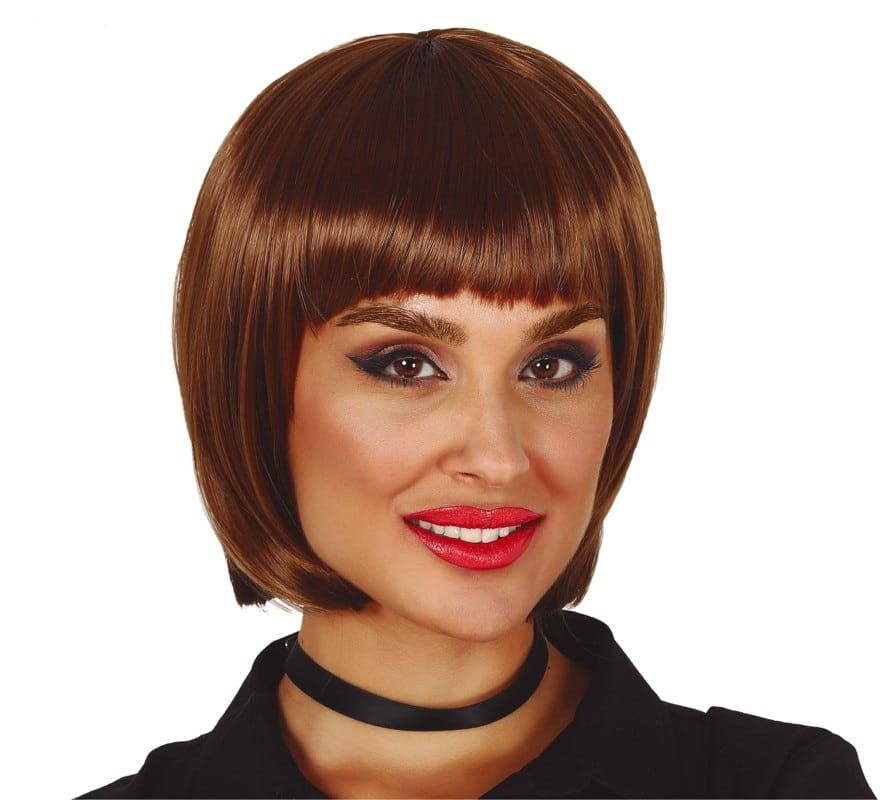 Peruka damska, brązowy bob z grzywką