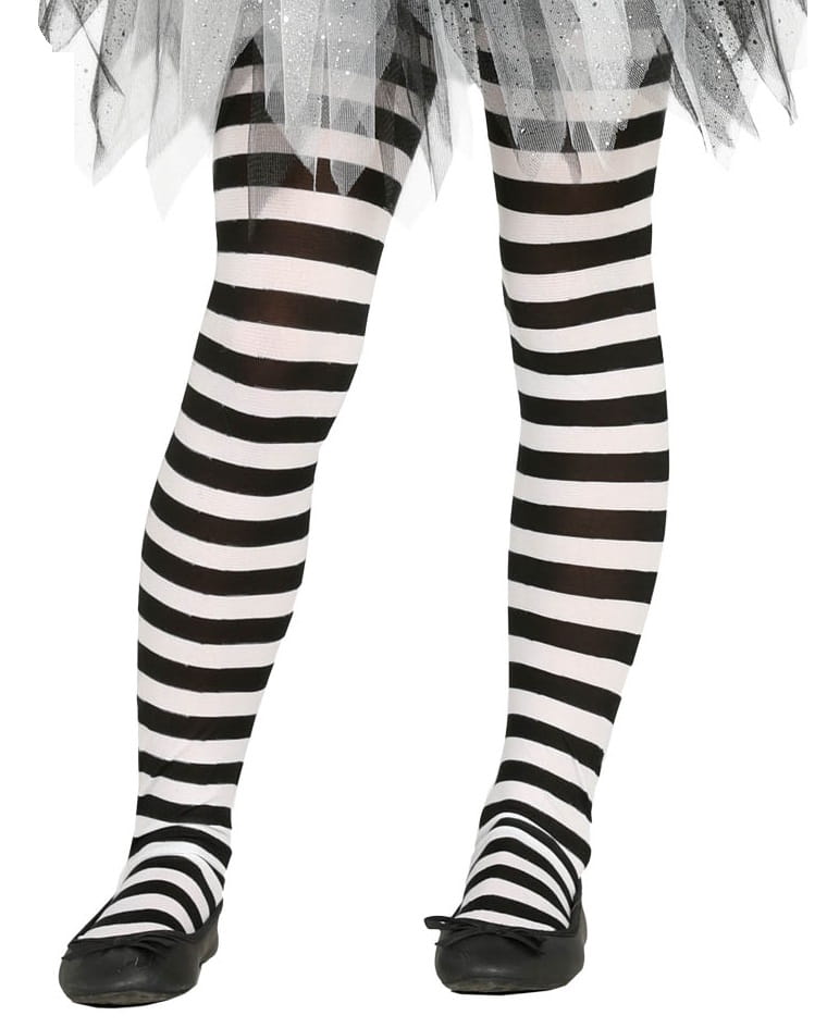 Koniecznie musisz zaopatrzyć ją w rajtuzy w biało-czarne paski, które doskonale współgrają się z kostiumem na Andrzejki.