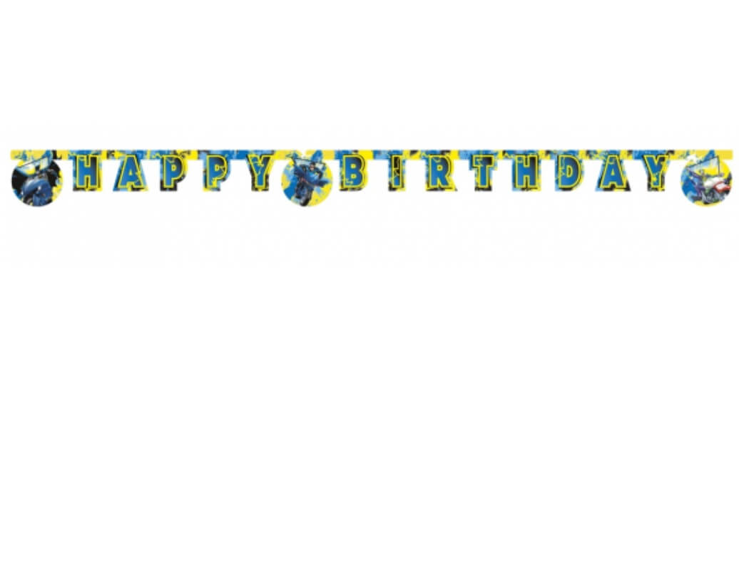 Kolorowy baner z napisem Happy Birthday połączony sznureczkiem stworzy doskonałą dekorację w oryginalnym stylu.