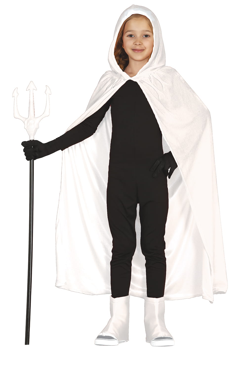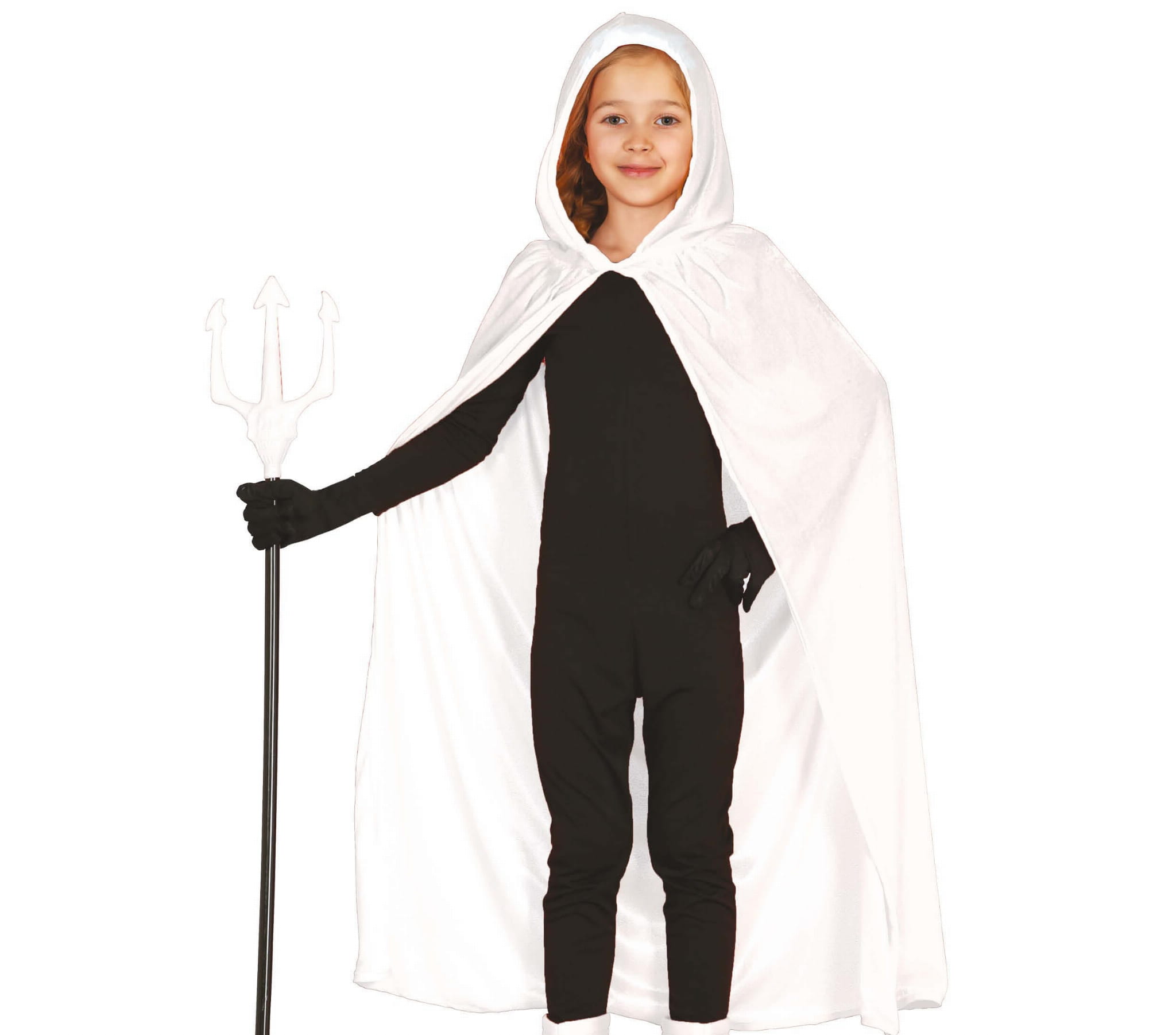 Biała peleryna z kapturem do stroju Zima, Bałwan, Bocian, Orzeł, Duch, Anioł, Zima, Łabędź , welur