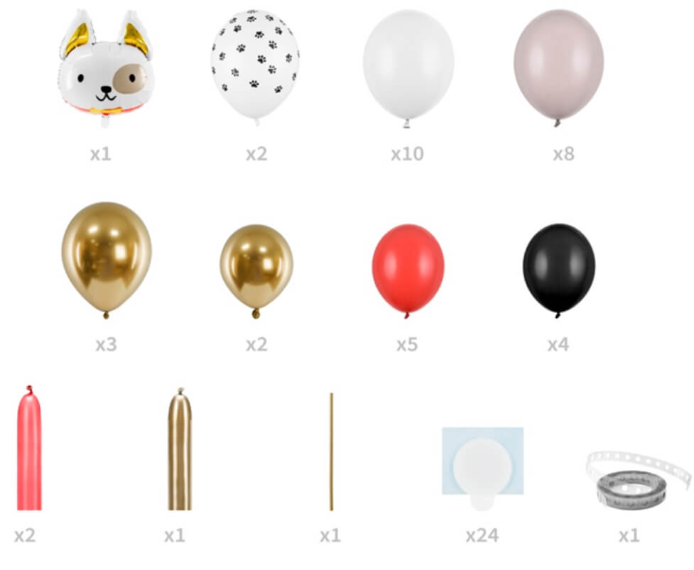 Do dekoracji użyj dużego zestawu balonów do stworzenia Pieska. Gotowy Set pozwoli zaoszczędzić czas na wybór odpowiednich produktów.
