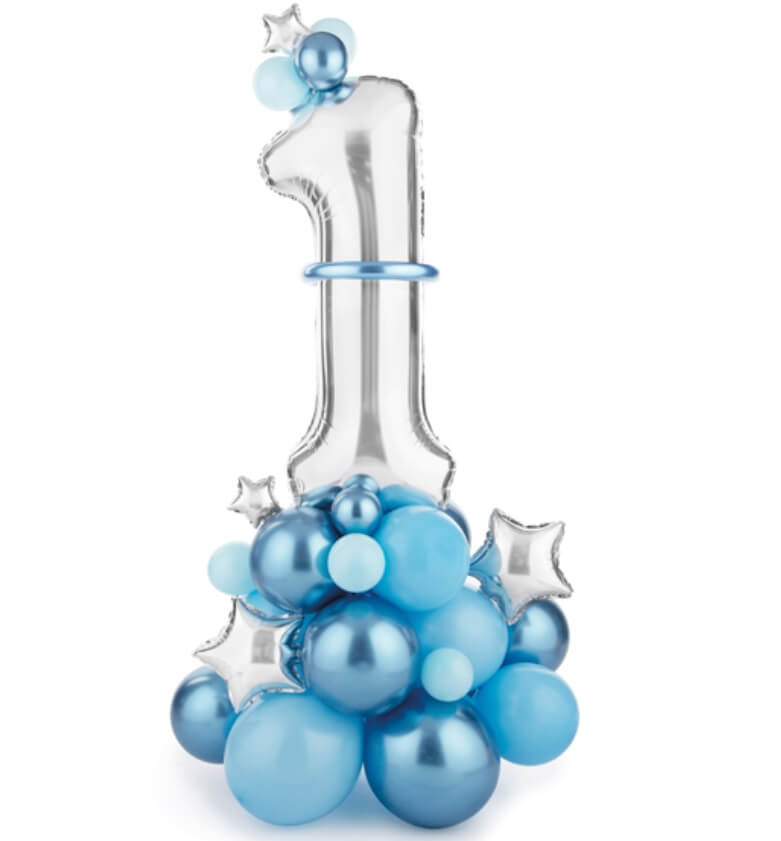 Bukiet balonów na Roczek, 1 niebieska, stojąca kompozycja z balonów