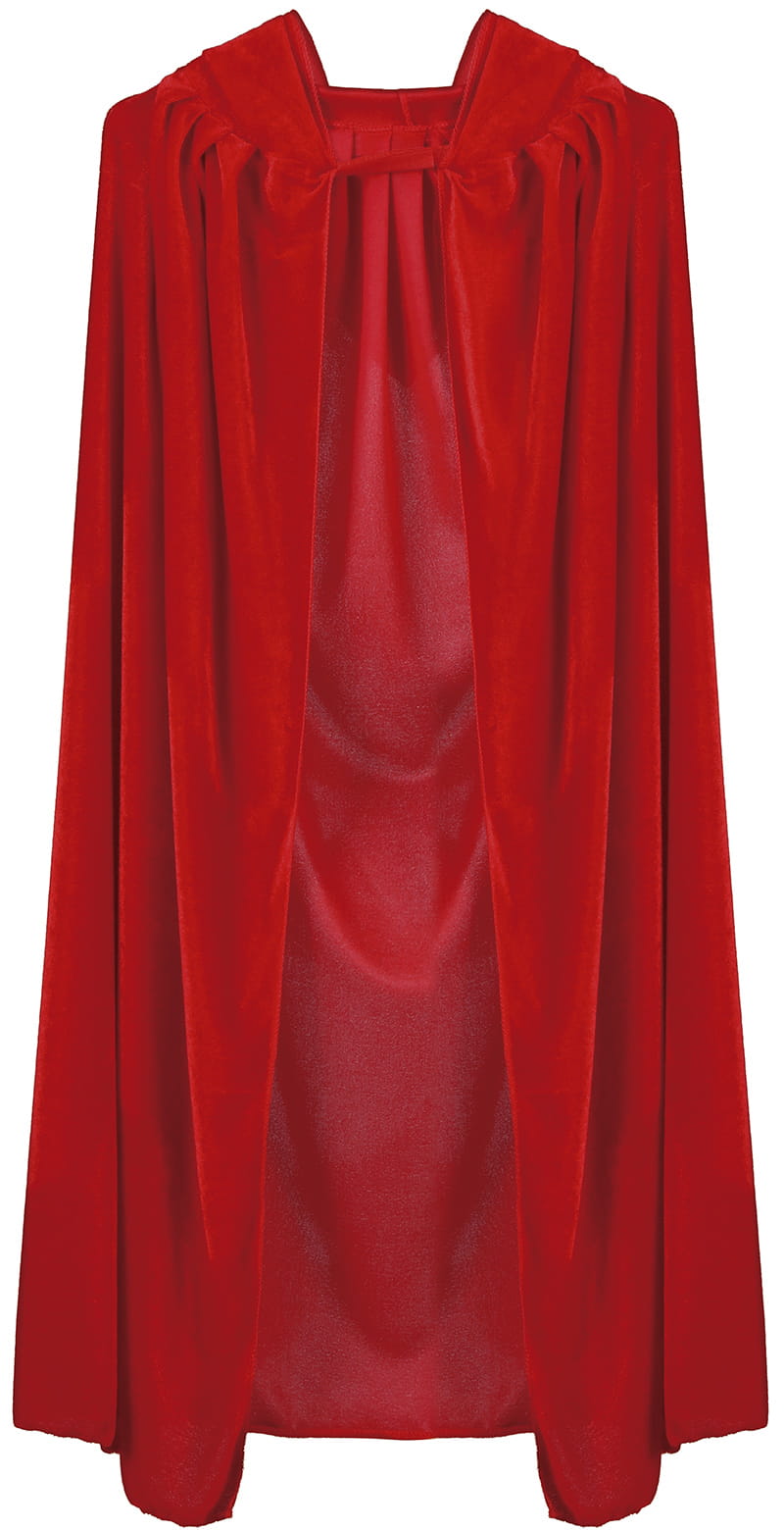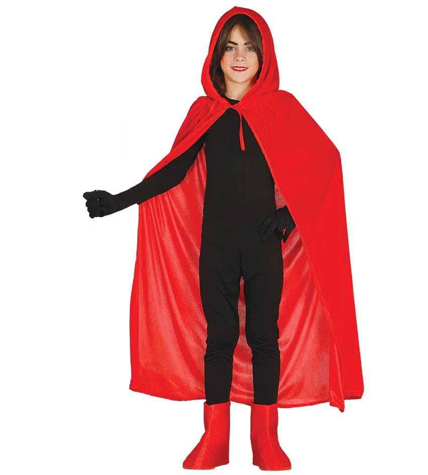 Czerwona, welurowa peleryna z kapturem do stroju diabła, bohatera, ptaka, owoc