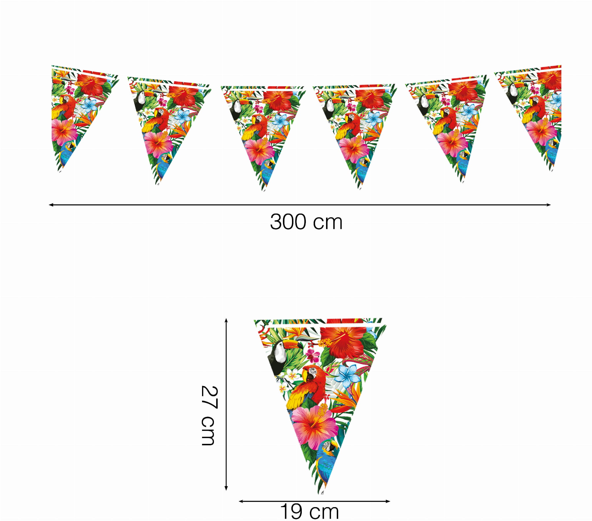 Hawajska girlanda z tropikalnych flag to super dekoracja podczas hawajskiej imprezy.