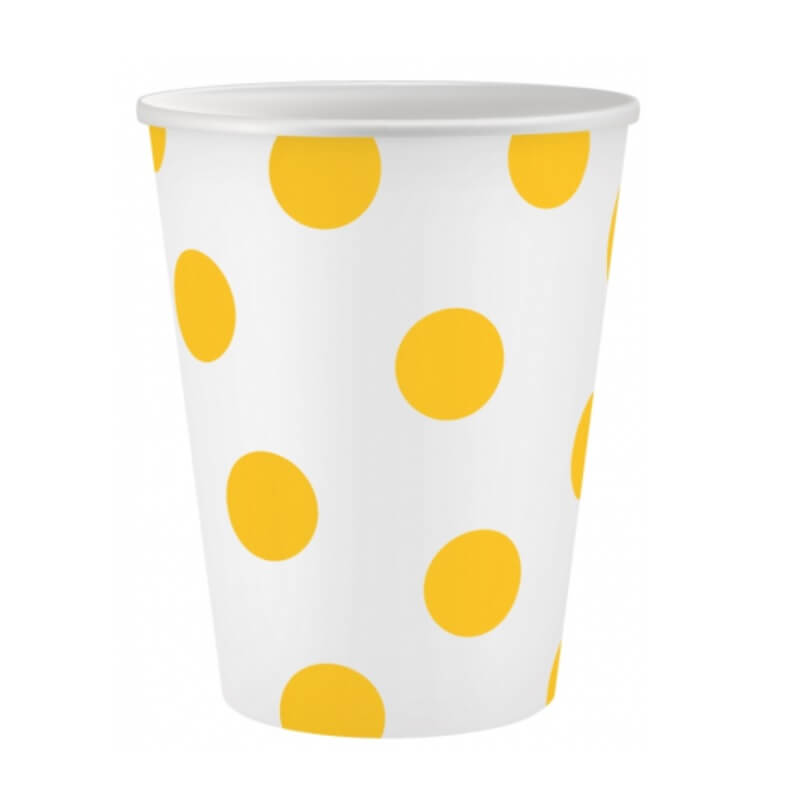 Kubeczki papierowe w Groszki żółte 6 szt.