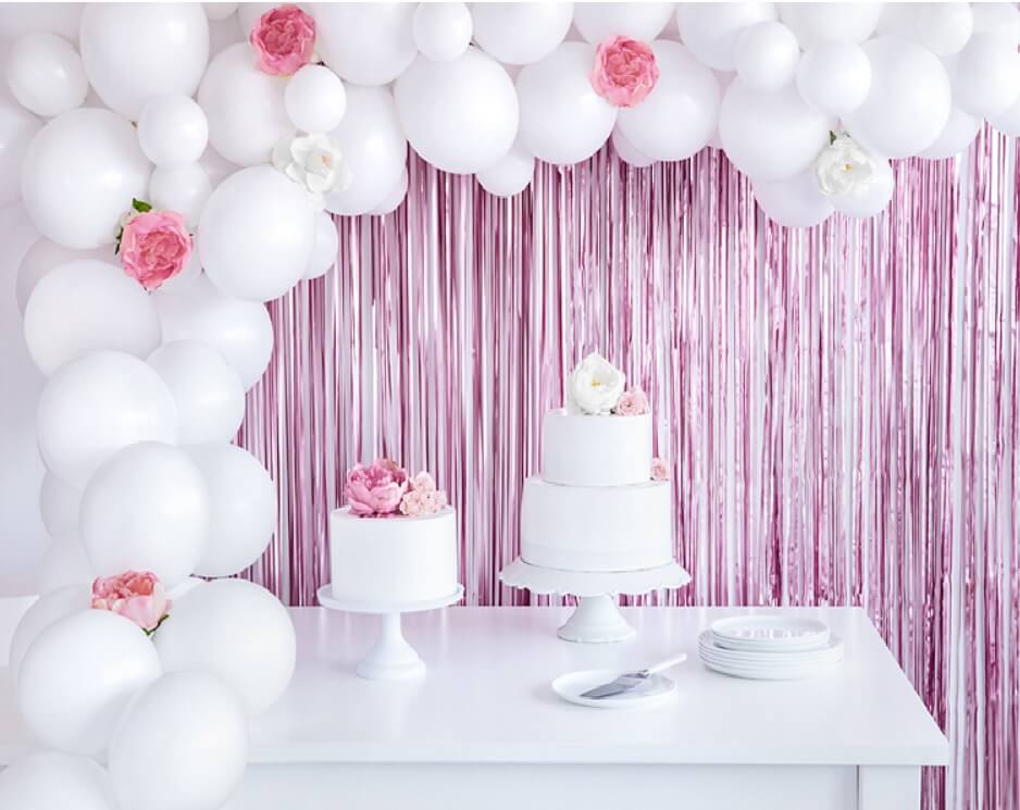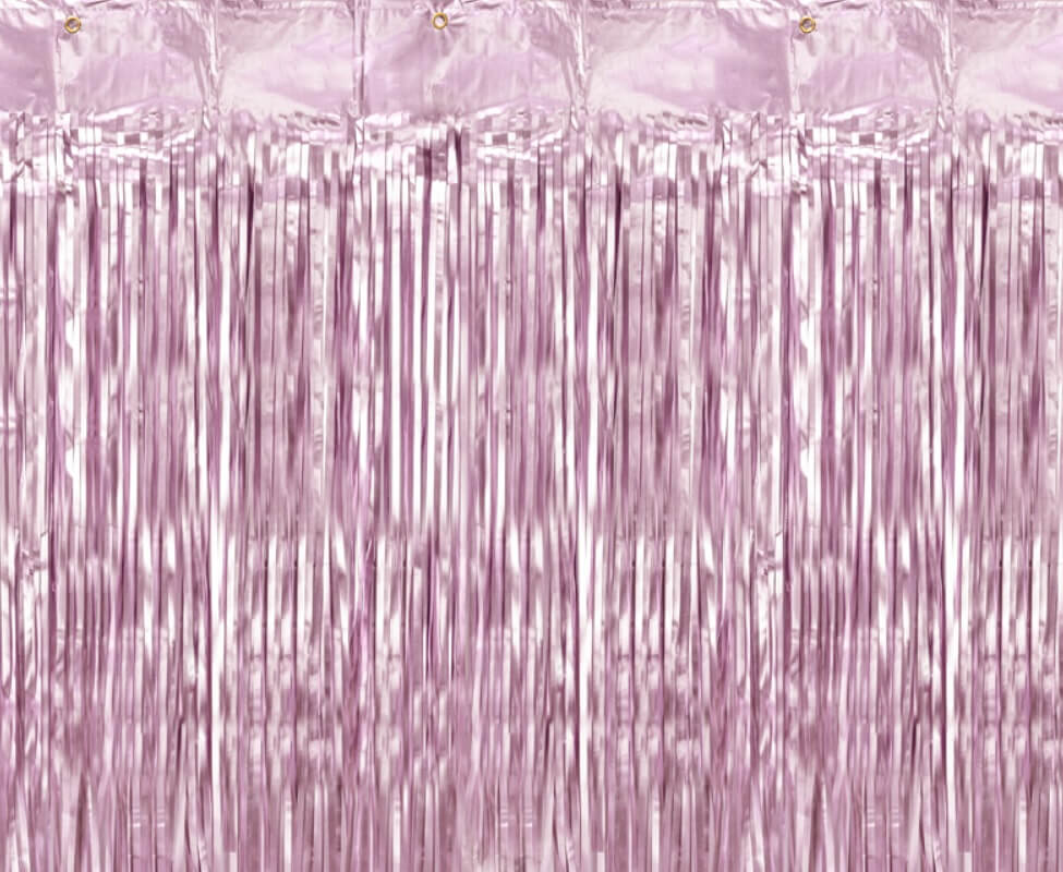 Kurtyna wykonana z różowej błyszczącej folii, doskonała do powieszenia w drzwiach czy oknie.