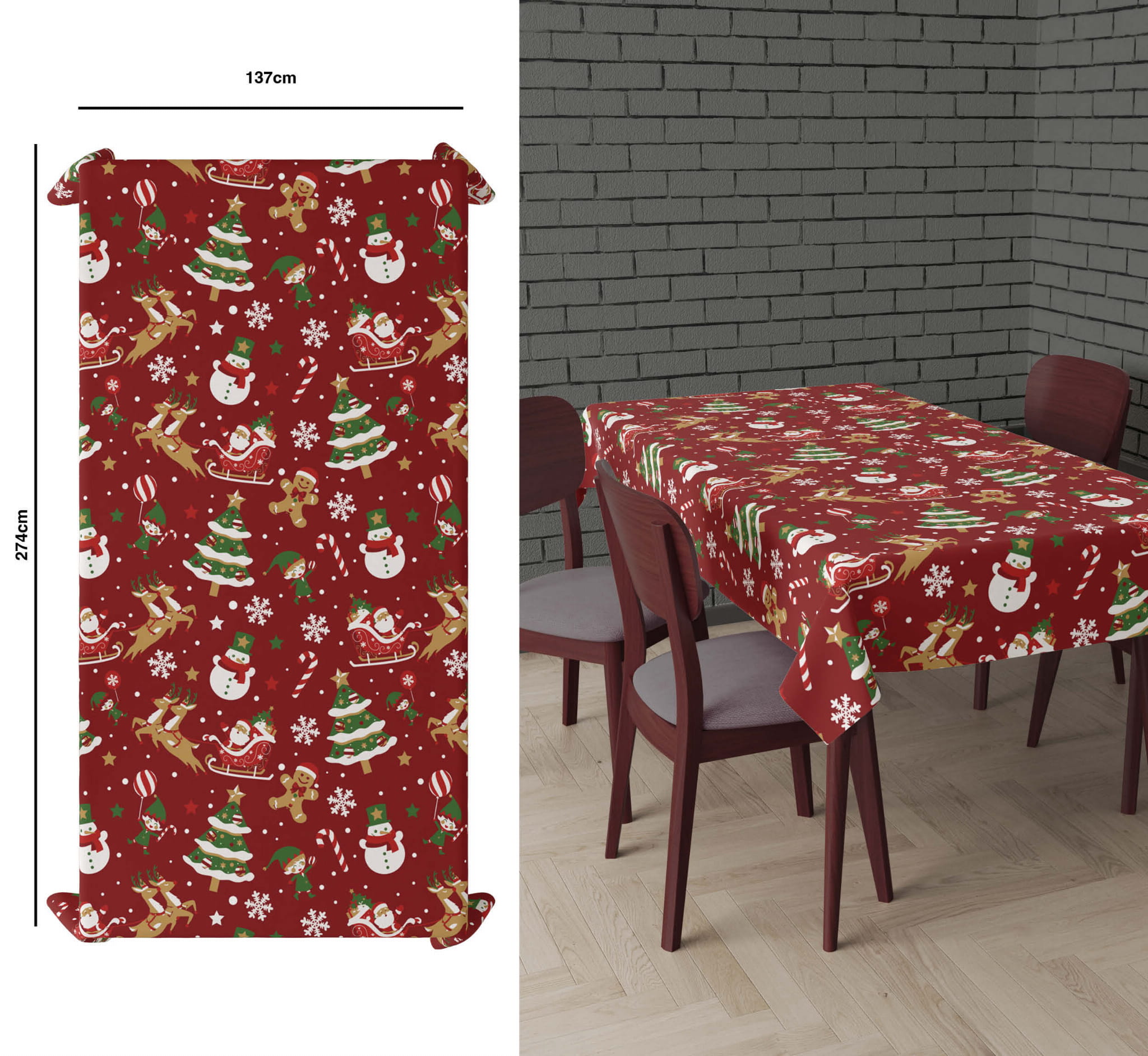 Ten elegancki świąteczny obrus o wymiarach 137x274 cm świetnie sprawdzi się podczas wigilii rodzinnych, świątecznych spotkań firmowych oraz klasowych wigilijek. Dzięki wykonaniu z wysokiej jakości folii, obrus jest wodoodporny, łatwy w czyszczeniu i odporny na zabrudzenia – idealny na każdą okazję, gdzie liczy się praktyczność i styl!