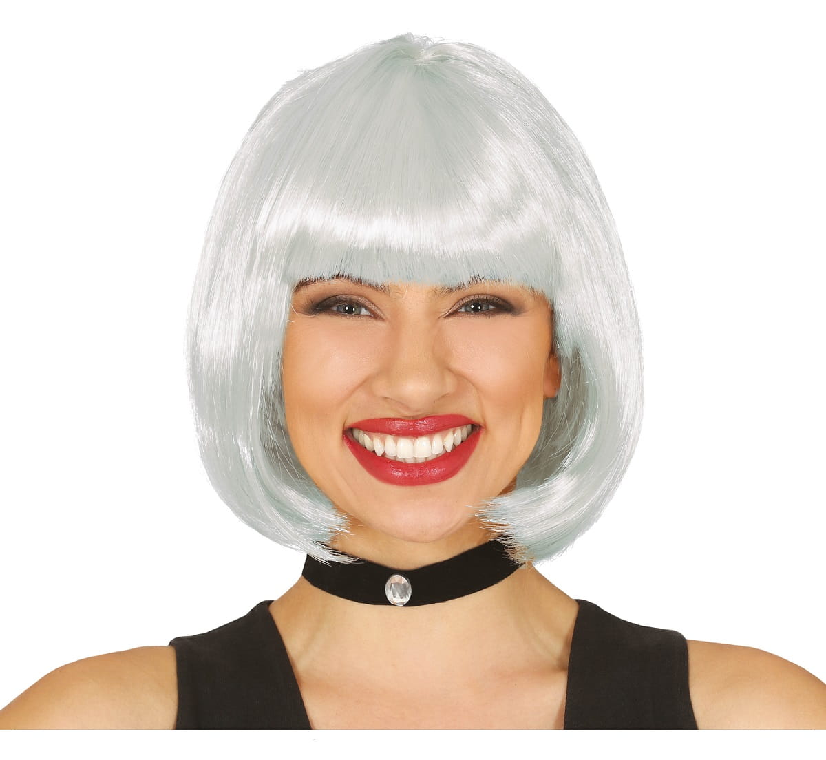 Peruka damska bob z grzywką, biała, siwa