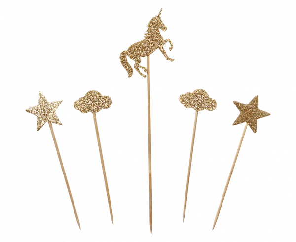 Pikery, Toppery Jednorożec, złoty brokat, 5 szt.