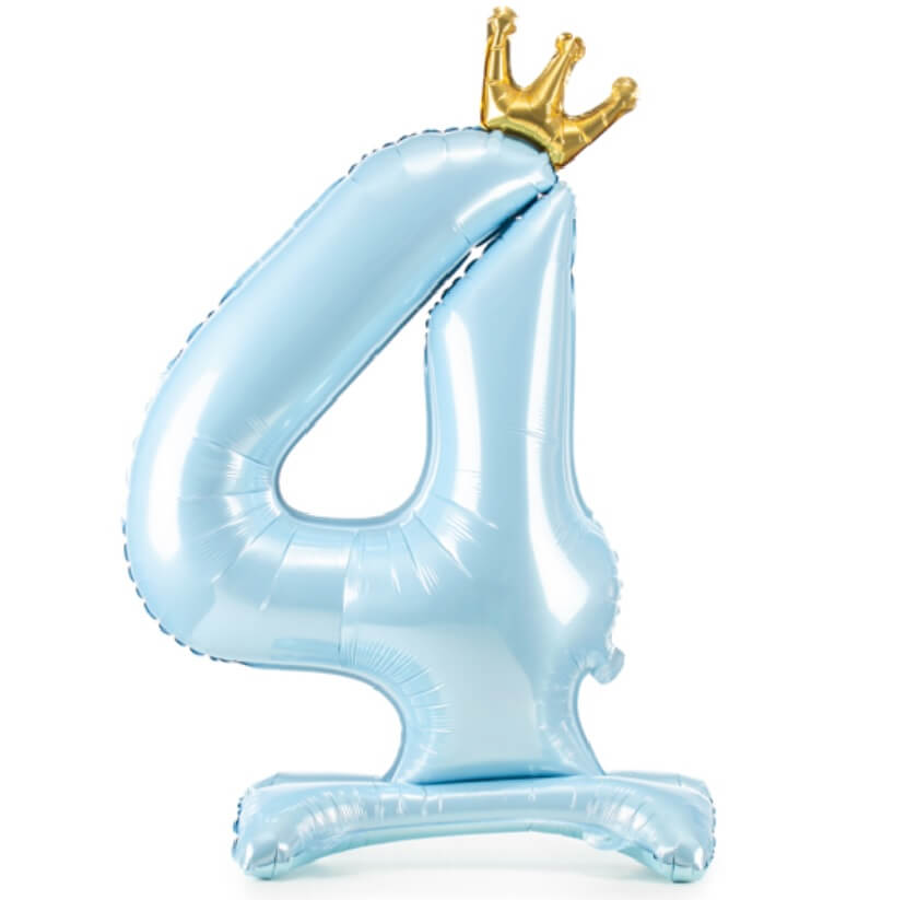 Stojący balon foliowy Cyfra 4, błękitna z koroną, 84 cm