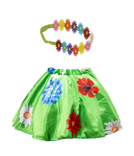 Szybkiej przemiany dokonasz za pomocą oferowanej spódniczki pani wiosny i opaski z wiosennych kwiatów.