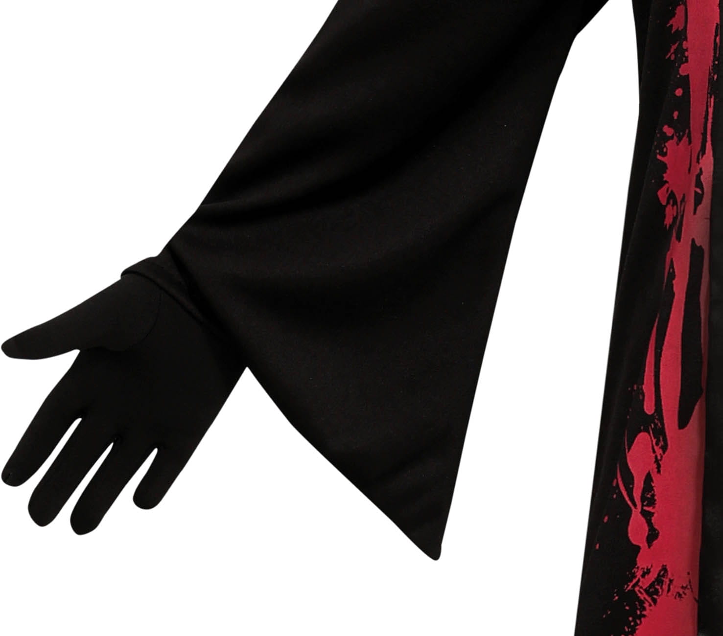 - Pelerynę z okultystycznymi, czerwonymi nadrukami, które dodają kostiumowi głębi i tajemniczości.