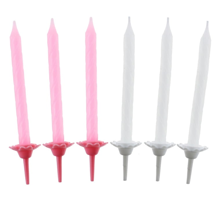 Świeczki na tort białe i różowe (24 szt.)