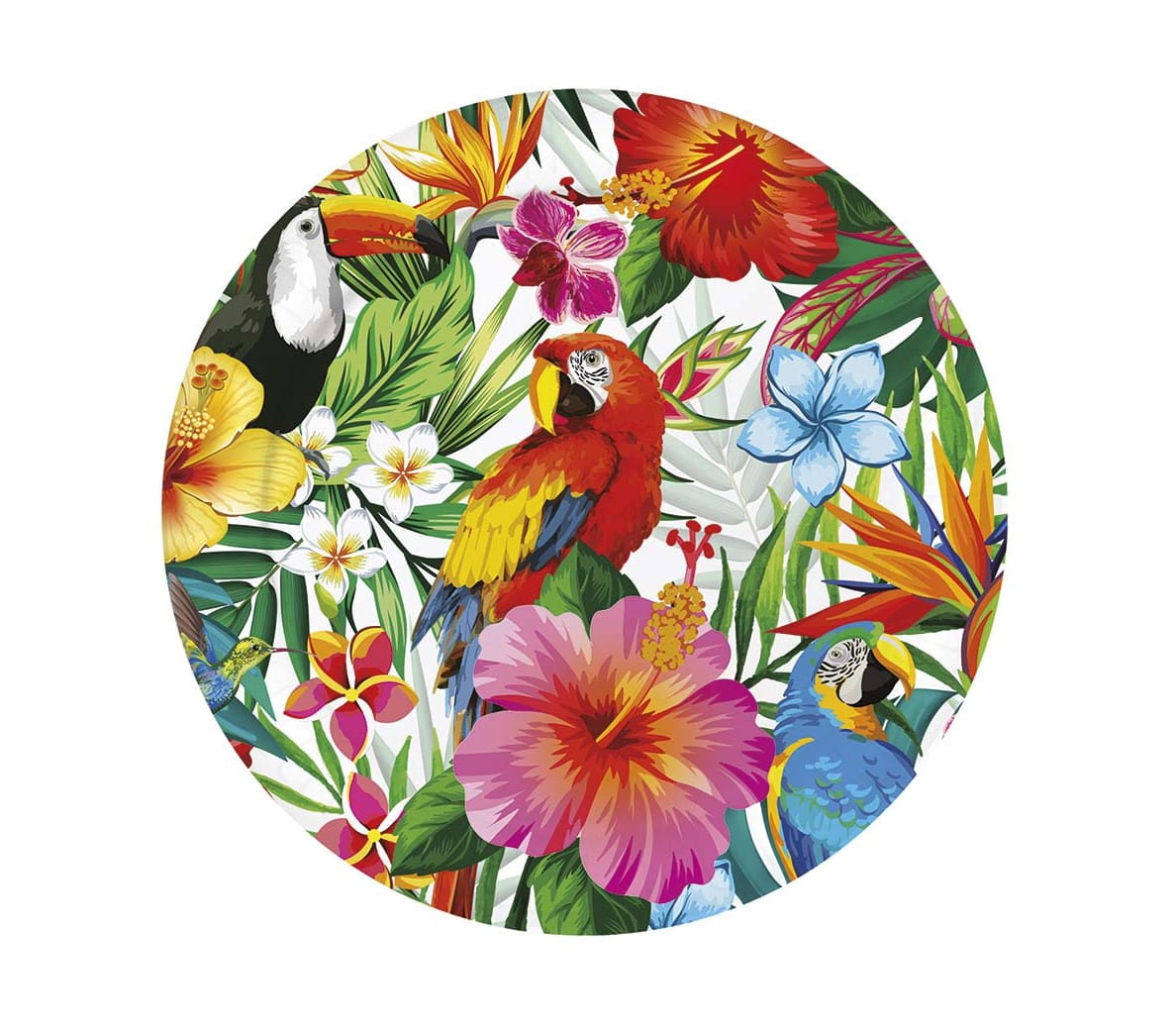 Kolorowe talerzyki papierowe w stylu tropikalnego party sprawdzą się podczas serwowania przystawek, deserów, czy tortu.