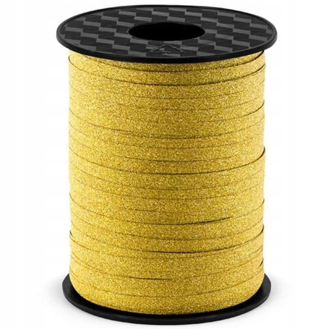 Tasiemka do balonów, prezentów brokatowa złota, 225 m