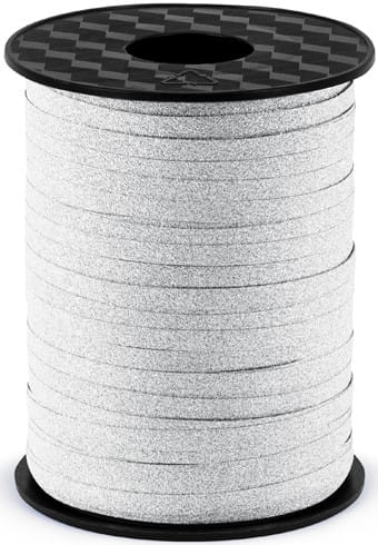 Tasiemka do balonów, prezentów srebrna, 225 m