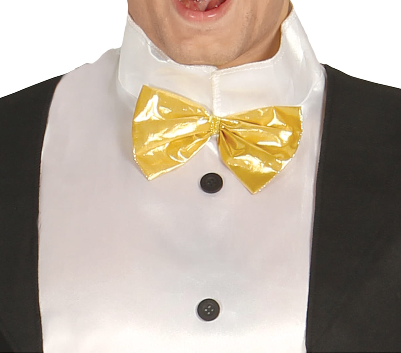 - Atrapa białej koszuli ze złotą muszką – idealne dopełnienie szykownego stylu.