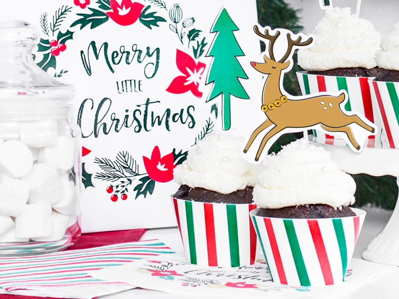 Foremki do babeczek pięknie skomponują się na stole na którym zagoszczą inne akcesoria z serii Merry Xmas.