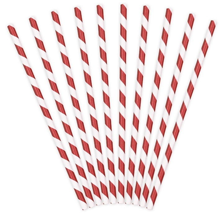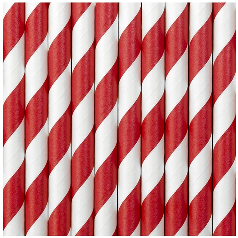 Słomki papierowe do napoi biało-czerwone 10 szt.