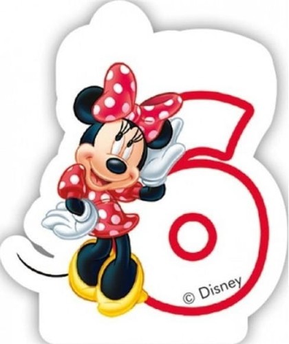 Świeczka urodzinowa z Myszką Minnie w kształcie cyfry 6.
