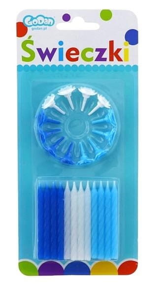 24 świeczki (8 szt x błękitnych, 8 szt x niebieskich, 8 szt x białych)