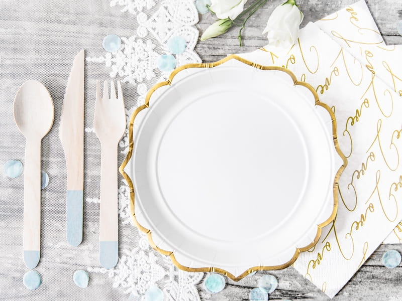 Zadbaj żeby naczynia jednorazowe były eleganckie oraz tworzyły piękny wystrój stołu.
