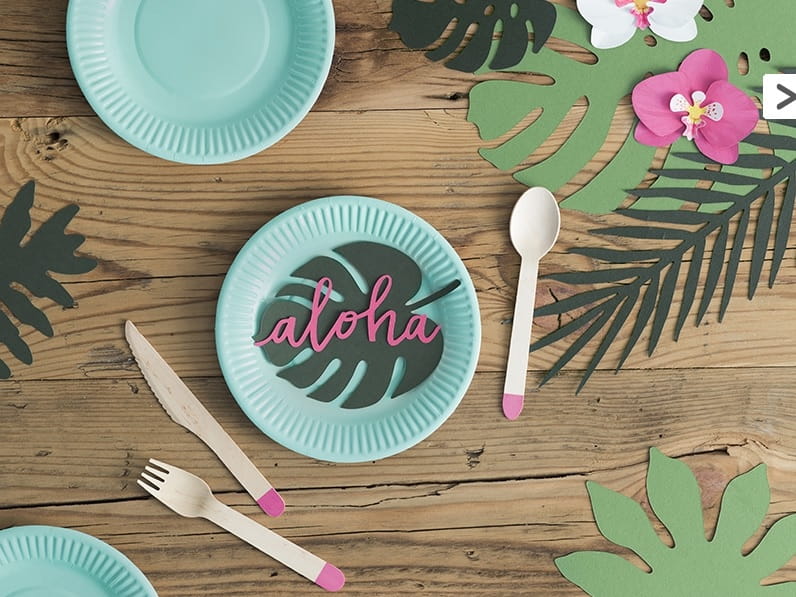 Wizytówki na stół Aloha zielone tropikalne liście 6 szt.